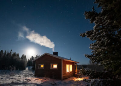 Een volle dag wandelen door het winterse landschap. De route loopt door heuvelachtig terrein met prachtige uitzichten over de taiga. Kans op het spotten van rendieren of sporen van elanden. Lunch onderweg in de sneeuw. Overnachting in een afgelegen hut zonder elektriciteit, waar de stilte van Lapland volledig tot zijn recht komt.