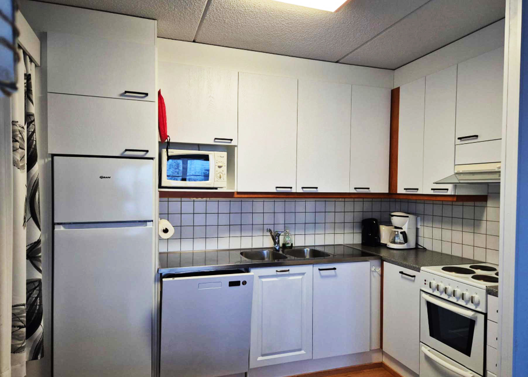 Dit moderne appartement, geschikt voor 2 personen, is op slechts enkele minuten lopen van het centrum van Ruka en de skilift. Het heeft een royaal zit- en eetgedeelte en de keuken is goed uitgerust.