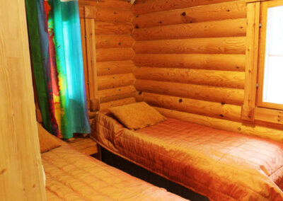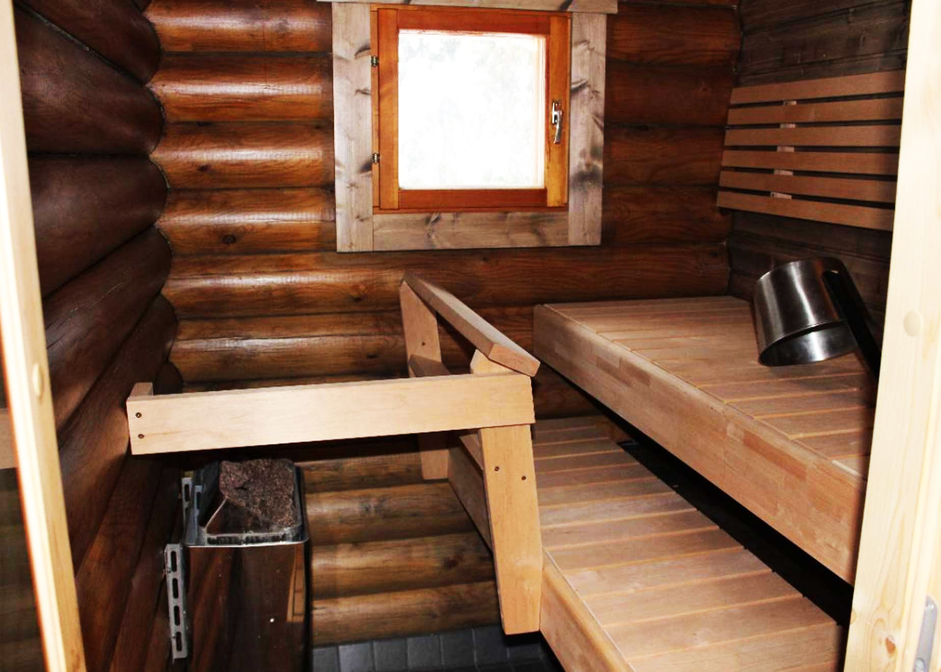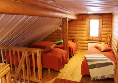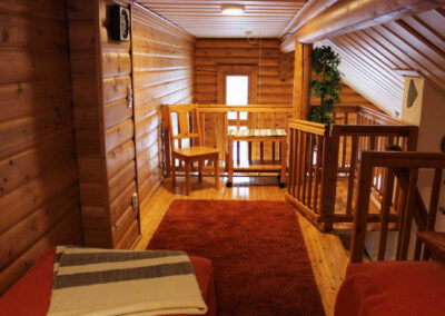 Er is een slaapkamer met twee eenpersoonsbedden en een slaaploft met nog eens drie eenpersoonsbedden. Natuurlijk ontbreekt de sauna niet!